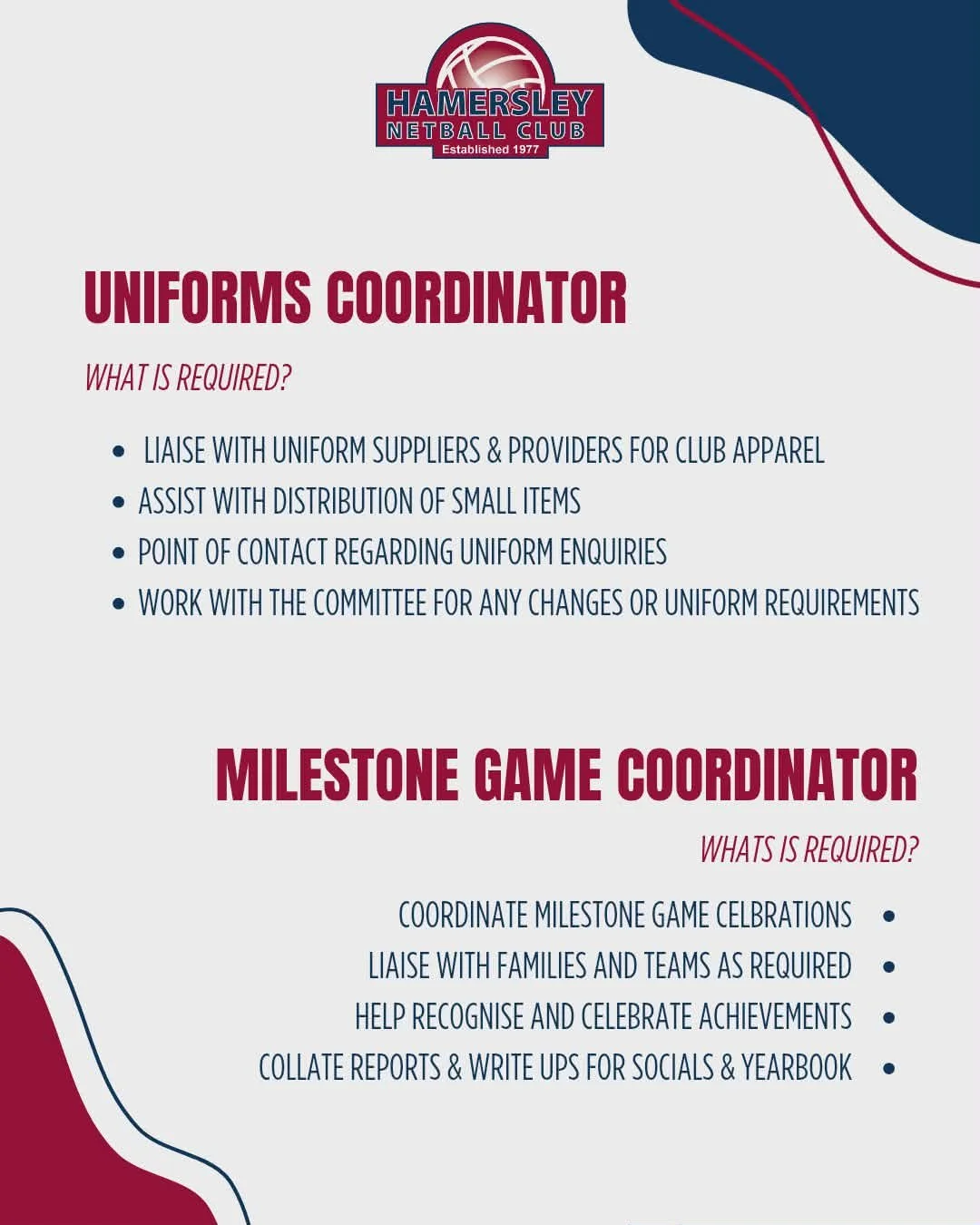 Welcome to Hamersley Netball Club Inc.
